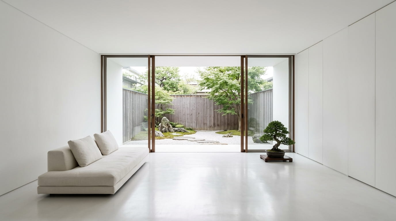 The use of soft tones, tranquil atmosphere, large windows, and an open patio brings in natural light as a primary design element, while simple carpet, clean floor, and lack of excessive decorations maintain a calm serene environment, peaceful ambiance, and even a sense of boundaries blurring. I often notice clean surfaces, uncluttered surfaces, open floor plans, subtle bold accents, hidden storage, geometric shapes, straight lines, and carefully chosen furniture selection that is sleek, understated, and based on quality over quantity, forming truly minimalist interiors with muted color, barely there tones, strong natural light, and carefully placed negative space used intentionally to support spaciousness and emotional clarity.