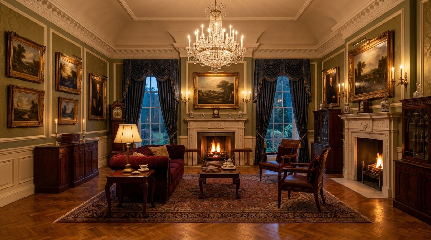 What characterizes this design style in particular are classic furniture items, elegant, but at the same time simple interiors, and sophisticated design elements such as ornate mouldings, carved woodwork, and luxurious materials such as silk, velvet, and damask. Inspired by such European styles as English design and French design of the 18th and 19th centuries and such historical periods as Georgian, Victorian, and Colonial periods, This is an indication of the European influence which resulted in the creation of a style of comfort and elegance that has stood the test of time for more than one century. In pictorial representation, I can imagine a restaurant with elegant dining tables, a small bar serving coffee, lit by the square windows allowing natural light to enter. There are chandelier-like fixtures and lights, creating symmetry. Other aspects include herringbone patterned wooden floors, a luxurious rug, and symmetrical furniture with dark wood and antique furniture forms. The environment is created to give a warm feeling to visitors. The room is completed by quality construction, luxury materials, and placement of antiques, replicas, and window coverings.